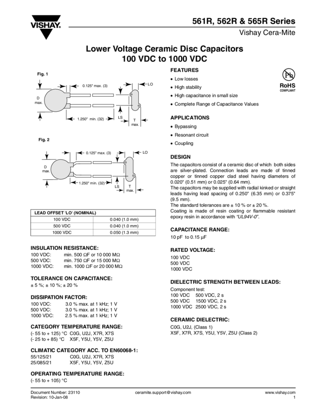 Cap Ceramic 750pF 1000V X5F 10% (7.4 X 4mm) Radial 6.4mm 105°C Bulk