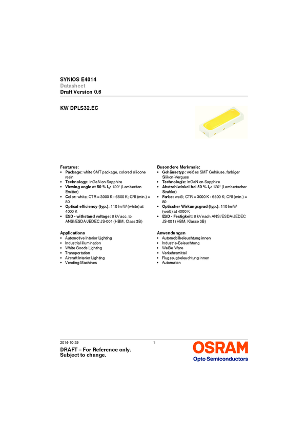 Dioda LED; LS E6SF-AABB-1-3A4B; SMD; 3030; PLCC4; czerwony; 2,5V; 50mA; 3,78-7,56lm; 1120-2800mcd; 3x3x2,85mm; 120*; OSRAM; RoHS