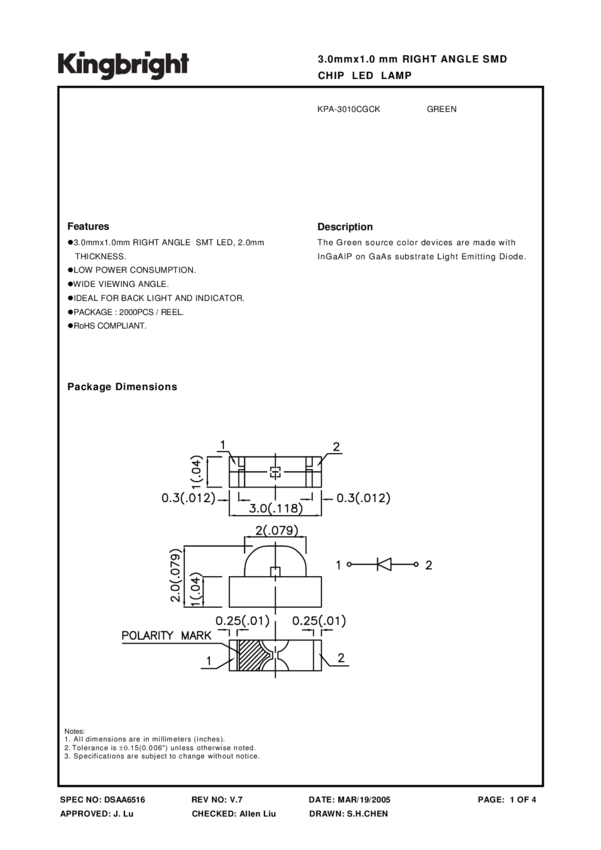 LED Uni-Color Green 574nm Chip LED 2-Pin SMD T/R