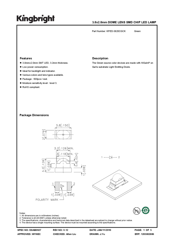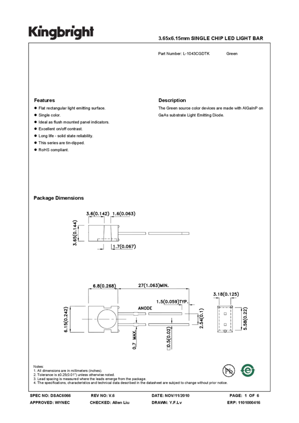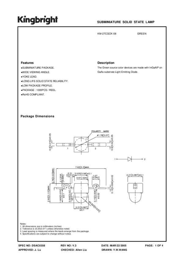 LED Uni-Color Green 574nm Standard LED 2-Pin
