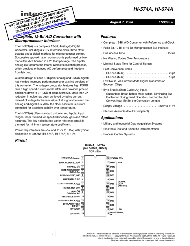 Complete, 12-Bit A/D Converters with Microprocessor Interface