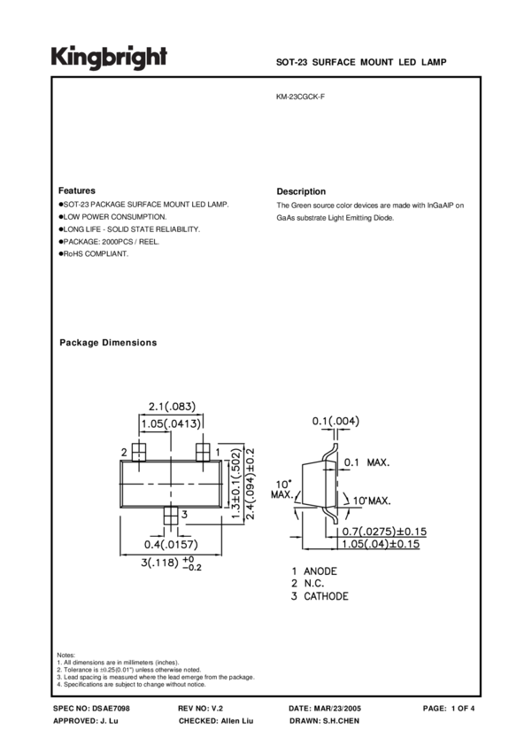 LED Uni-Color Green 574nm Chip LED 3-Pin SOT-23 T/R