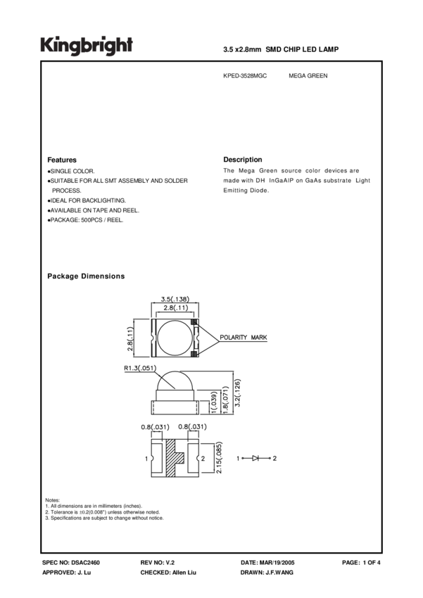 LED Uni-Color Green 574nm Chip LED 2-Pin SMD Bag
