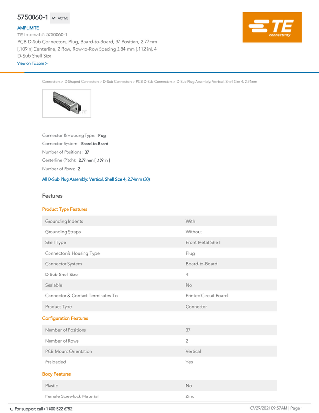 TE Connectivity 5750913-7 TE AMP AMPLIMITE .050 Hardware/Backshells/Conn, 1 szt.