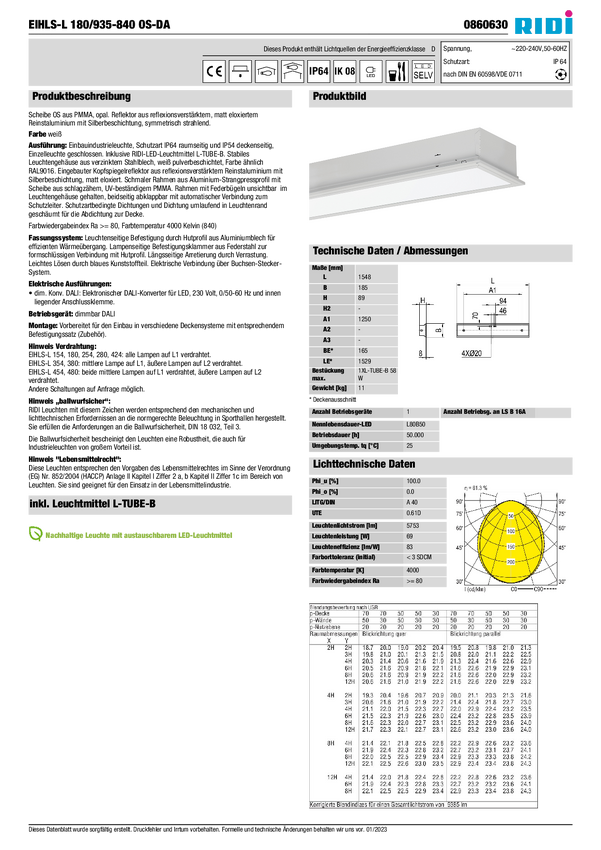 Lampa do zabudowy RIDI 850630 850630 69 W 5750 lm
