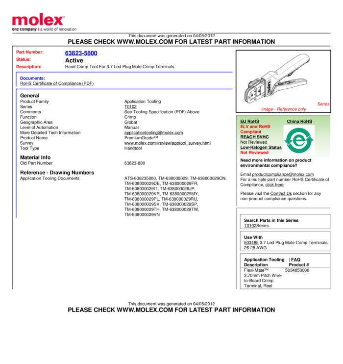 Tool For SL 156 Housings And Contacts For Large Insulation Diameter Wire
