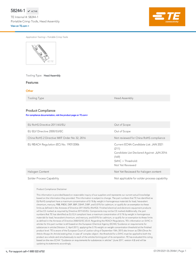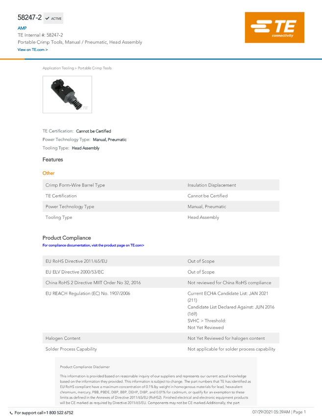 TE Connectivity TE AMP Powered Crimp Tools 58244-1