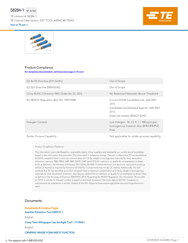TE Connectivity TE AMP Insertion-Extraction Tools 58284-1