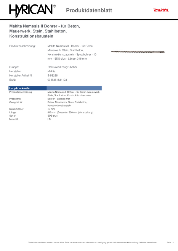 Wiertło udarowe Makita B-58235 10 mm 1 szt.
