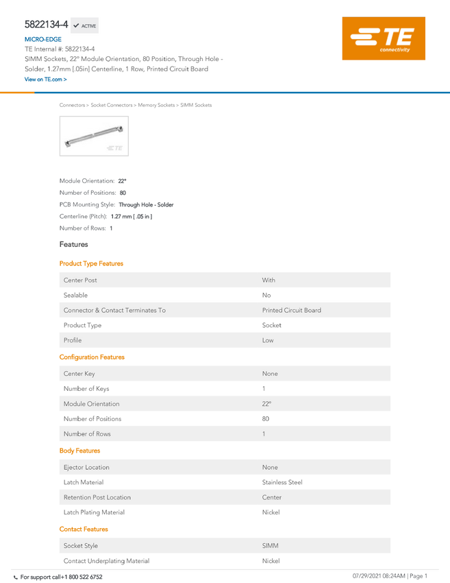 TE Connectivity TE AMP MICRO-EDGE 5822134-3, 1x -02050007145424