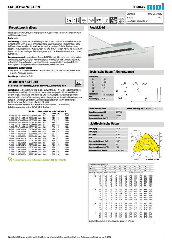 Oświetlenie wewnętrzne LED RIDI 860527 860527 48 W 5820 lm
