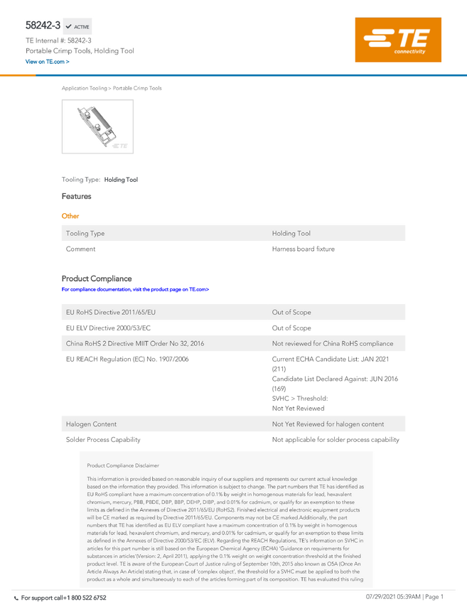 TE Connectivity TE AMP Powered Crimp Tools 58242-3