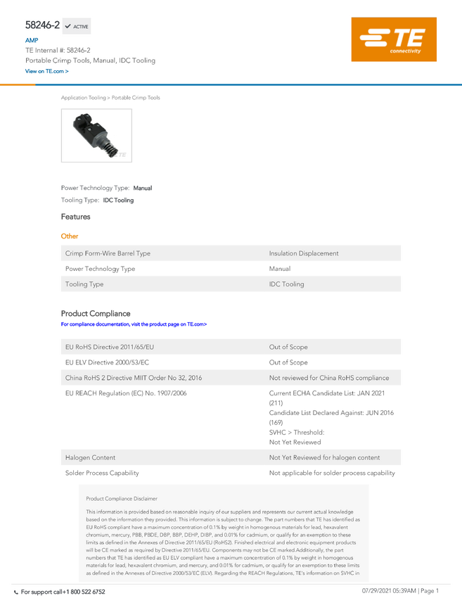TE Connectivity TE AMP Insulation Displacement Tools 58246-2