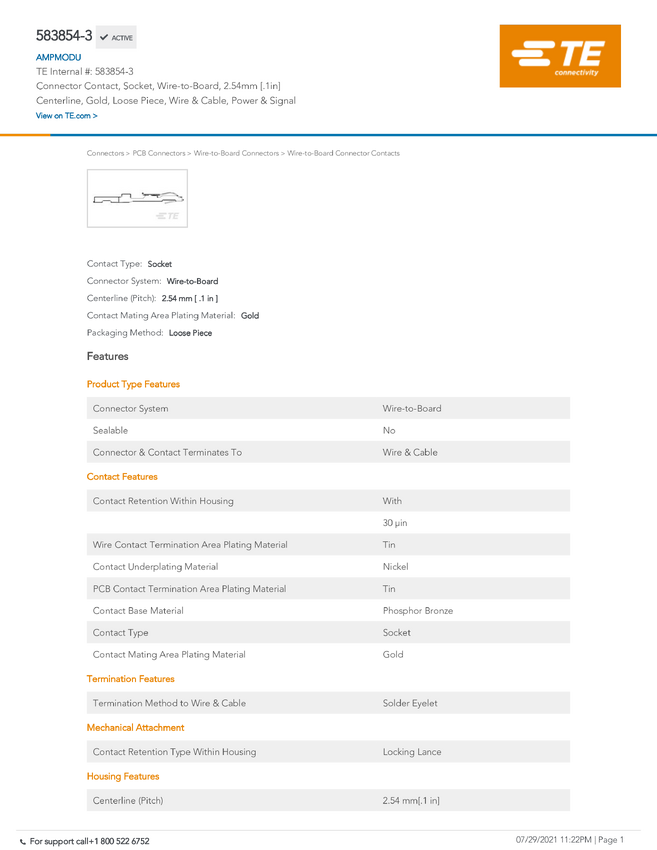 TE Connectivity 583854-3 TE AMP Misc One Piece Card Edge Connectors, 1 szt.
