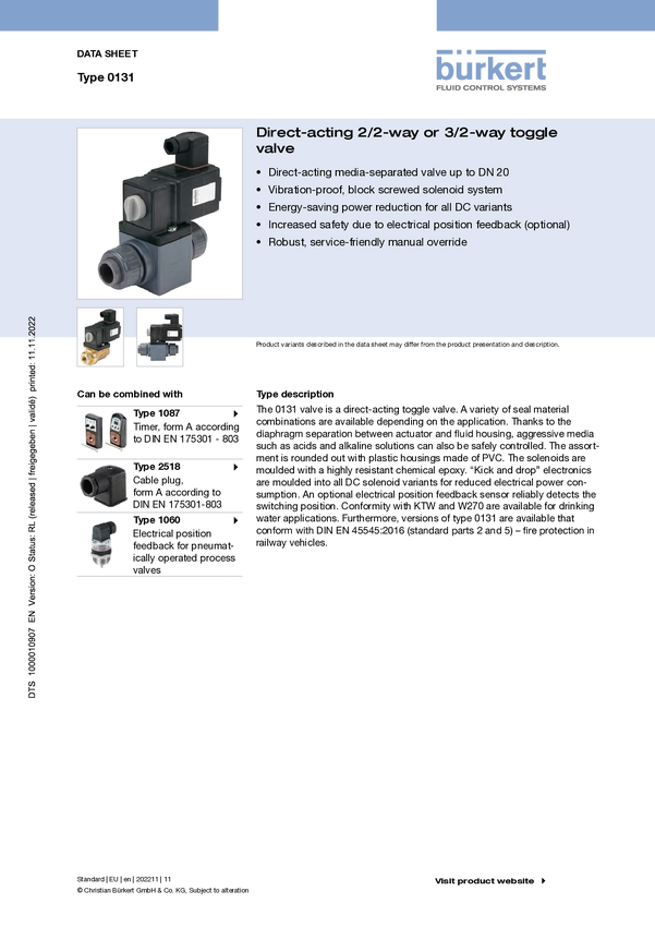 Zawór magnetyczny Bürkert 0131 58361, 0 bar (max)