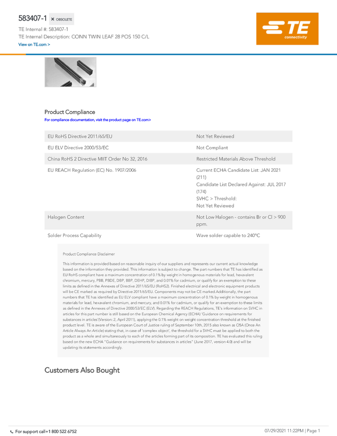 TE Connectivity 583407-1 TE AMP Misc One Piece Card Edge Connectors, 1 szt.