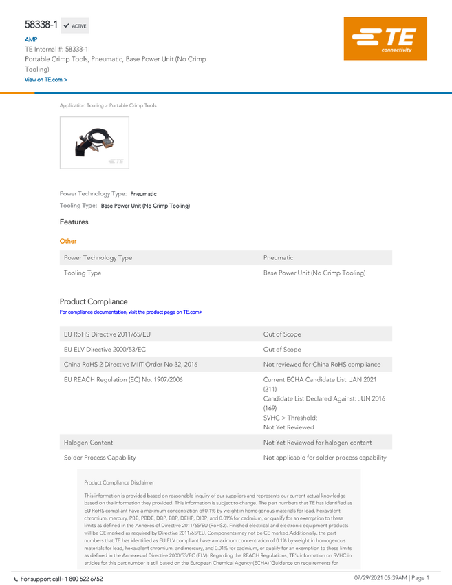TE Connectivity TE AMP Powered Crimp Tools 58338-1