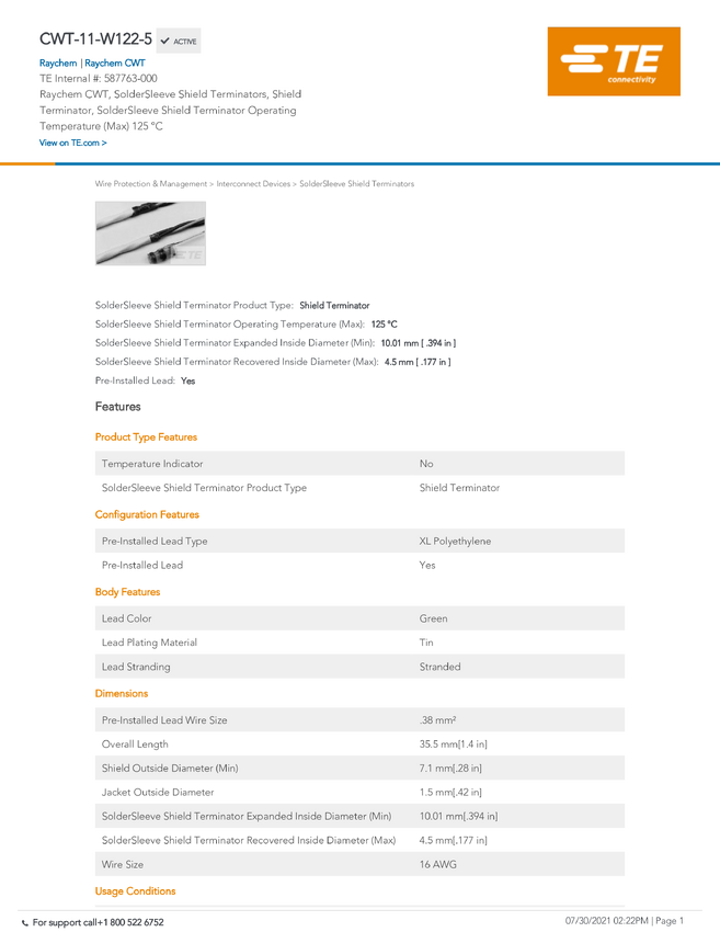 TE Connectivity TE RAY Solder Sleeves 587763-000, 1 szt.