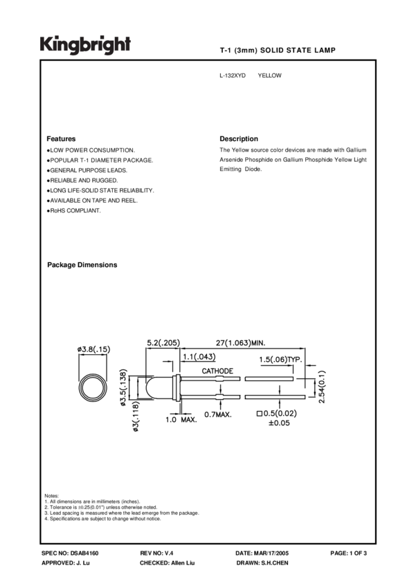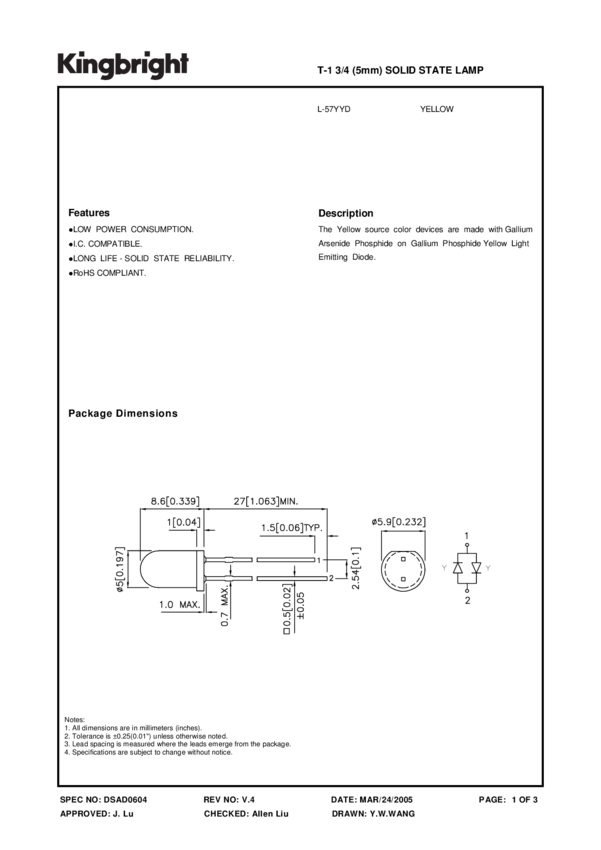 LED Uni-Color Yellow 588nm Standard LED 2-Pin T-1 T/R
