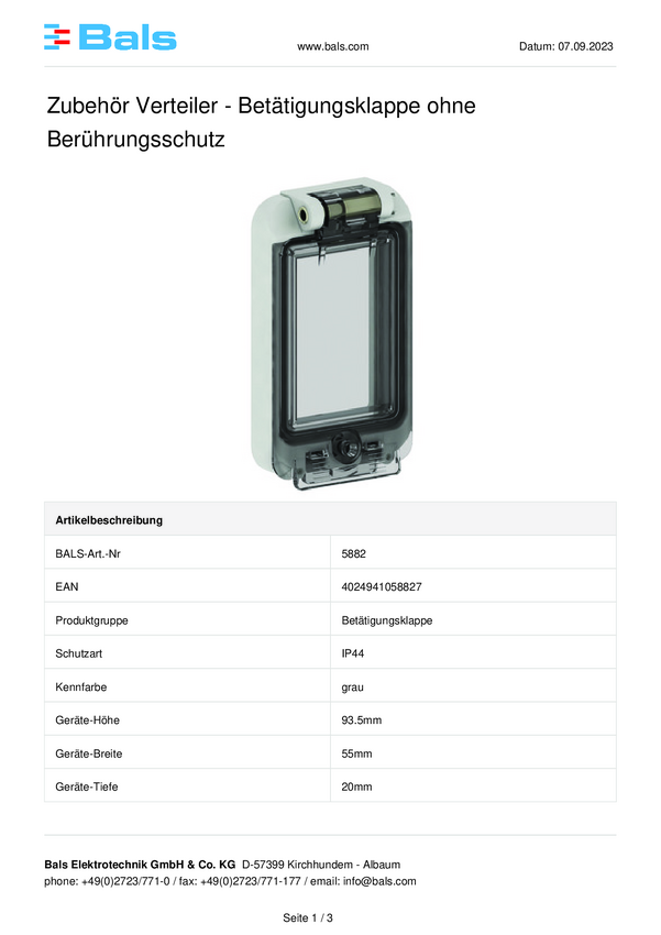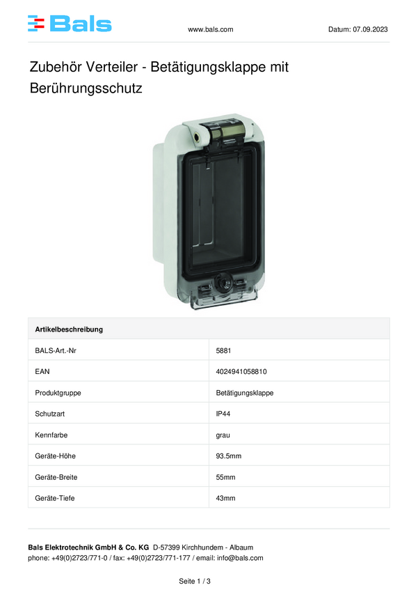 Bals Elektrotechnik 5881 Pokrywa składana 1 szt.