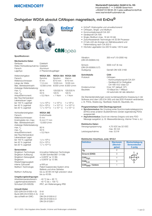Enkoder magnetyczny absolutny wieloobrotowy O 10 mm Wachendorff WDGA-58B CANopen