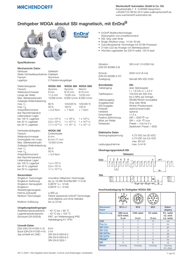 Enkoder magnetyczny absolutny jednoobrotowy O 10 mm Wachendorff WDGA-58B SSI BINAR
