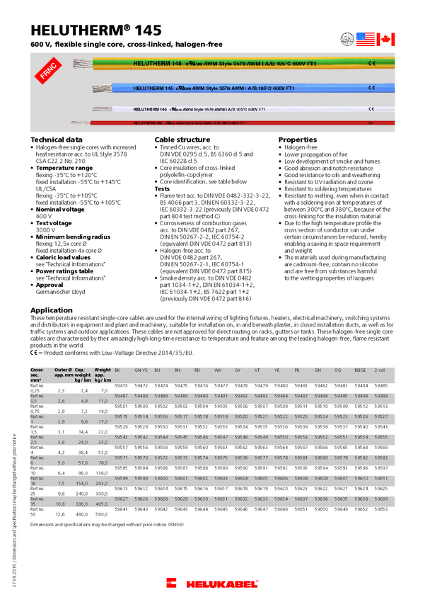 Helukabel 59598-500 Kabel odporny na wysokie temperatury HELUTHERM 145, 1 G 16 mm², 500 m