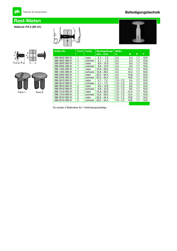 PB Fastener 096 0955 599 01-X Nit rozprężny Średnica otworu 5.5 mm PA czarny 10 szt.
