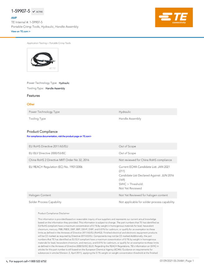 TE Connectivity TE AMP Powered Crimp Tools 1-59907-5