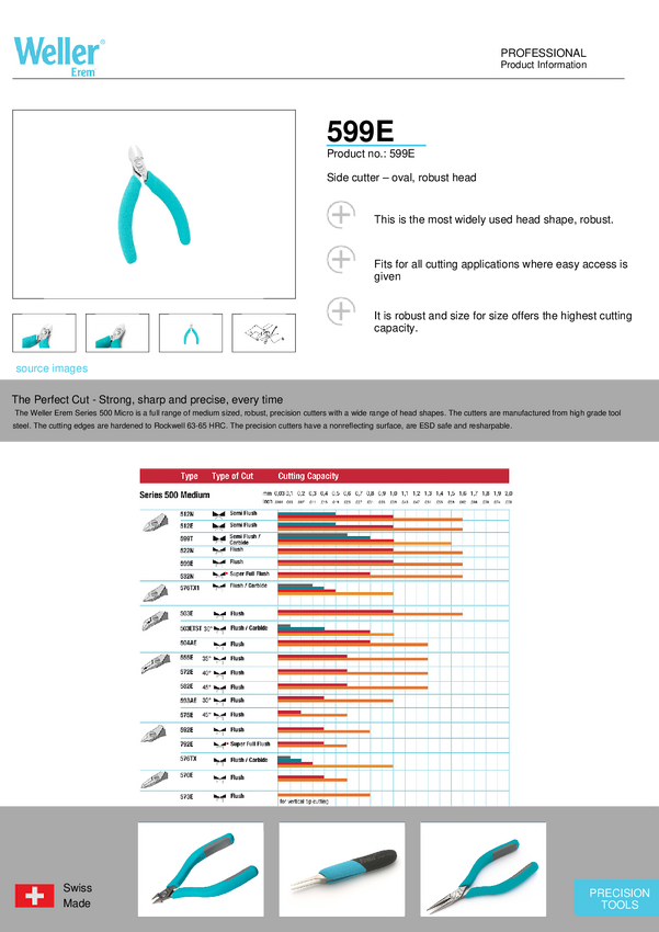 Szczypce specjalne Weller Erem® 599FO, 115 mm, ESD