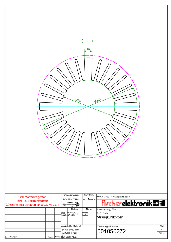 Fischer Elektronik 10021861 SK 599 15 SA Radiator LED 2.25 K/W (Ø x W) 120 mm x 15 mm