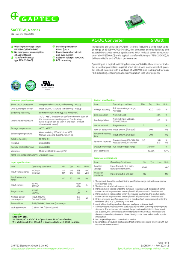 Konwerter AC/DC Gaptec 5ACFE1W_4 12 V/DC 420 mA 5 W