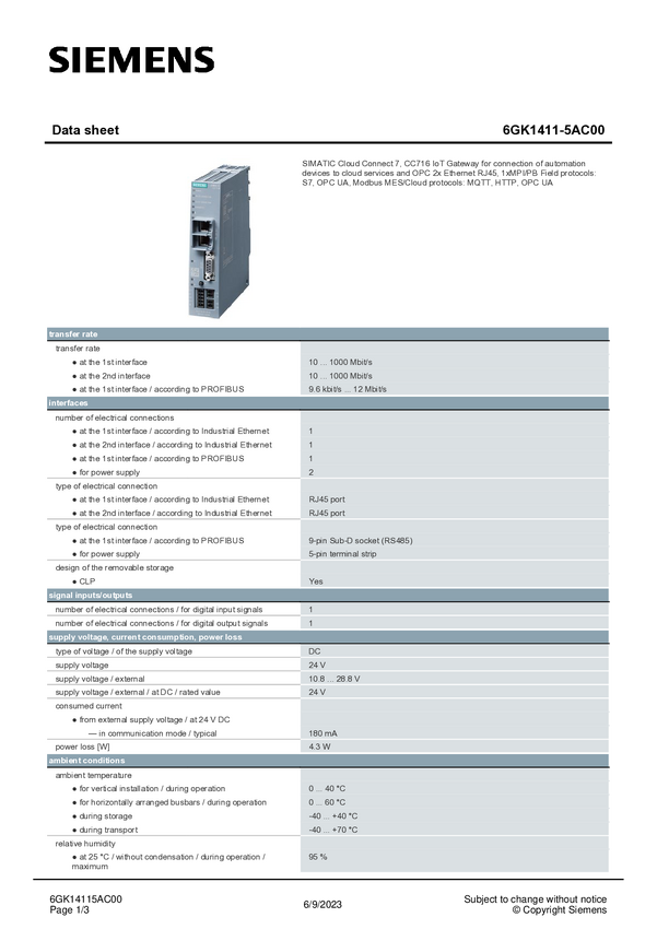 IO Link PLC Siemens 6GK1411-5AC00 6GK14115AC00