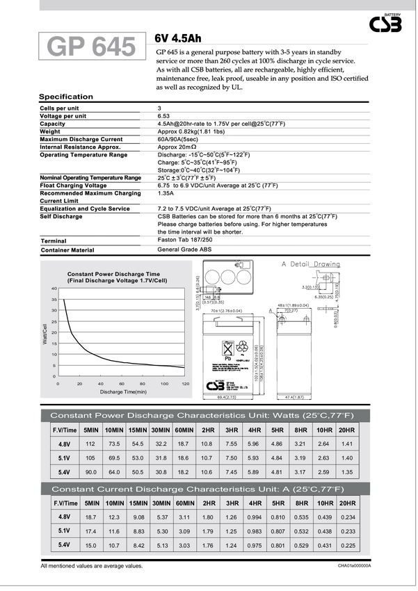 Akumulator bezobsługowy 6V/4,5Ah CSB