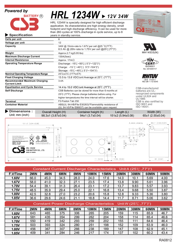 Akumulator bezobsługowy 12V/8,5Ah CSB