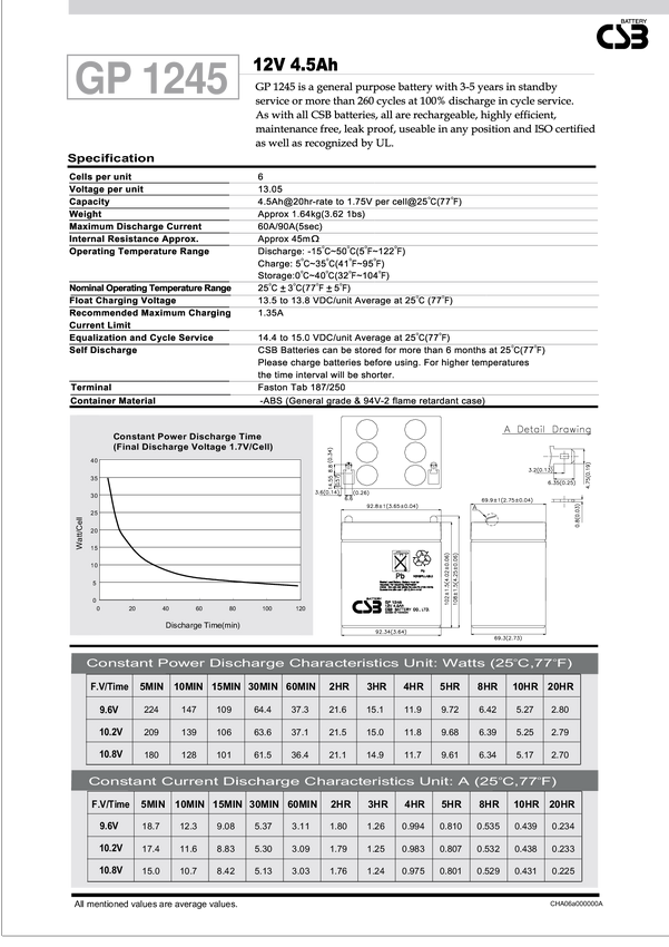 Akumulator bezobsługowy 12V/4,5Ah CSB