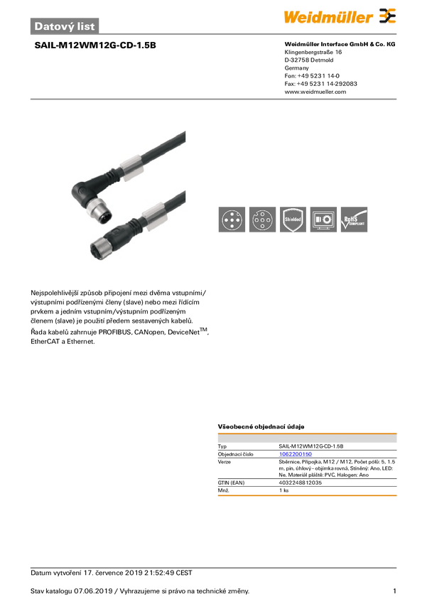 Przewód połączeniowy Weidmüller SAIL-M12WM12W-5B-1.5Q 1061930150 1 szt.