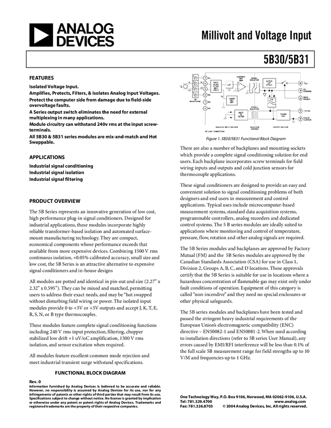 Isolated V Input - 4 Hz Bandwidth Signal Conditioning Module