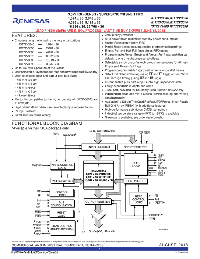 32K x 36 SuperSync II FIFO, 3.3V