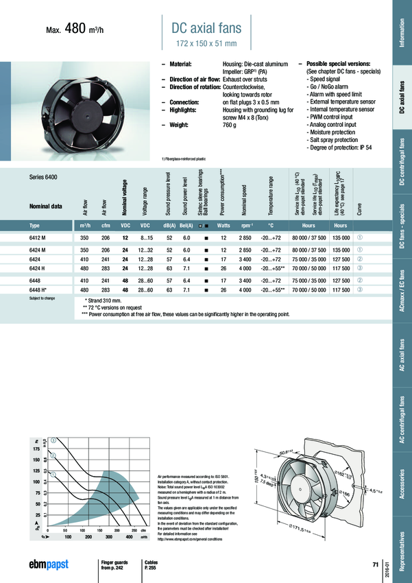 DC Fan Ball Bearing 48V 26W 4000RPM 282.5CFM 63dB Flange Mount