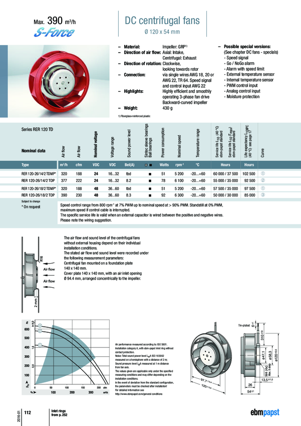 DC Fan Sintec Bearing 24V 2.4W 46.5CFM 37dB Flange Mount
