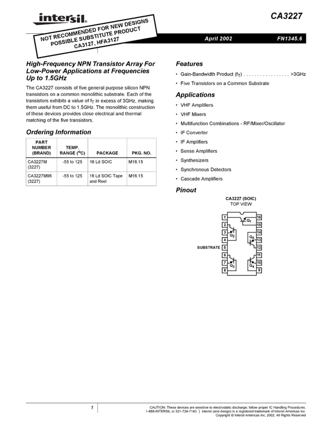 High-Frequency NPN Transistor Array For Low-Power Applications at Frequencies Up to 1.5GHz