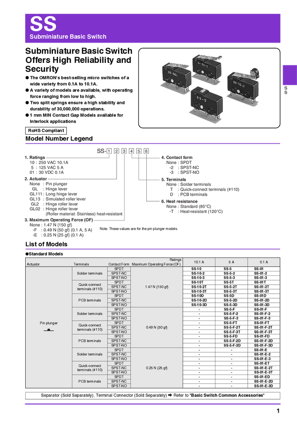 Omron SS-5GL-2T Mikroprzełącznik 125 V/AC 5 A 1 szt. torba