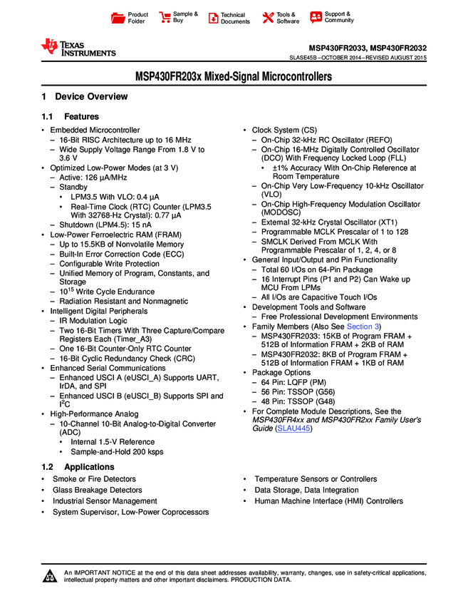 MCU 16-Bit MSP430 RISC 8.5KB FRAM 2.5V/3.3V 48-Pin TSSOP