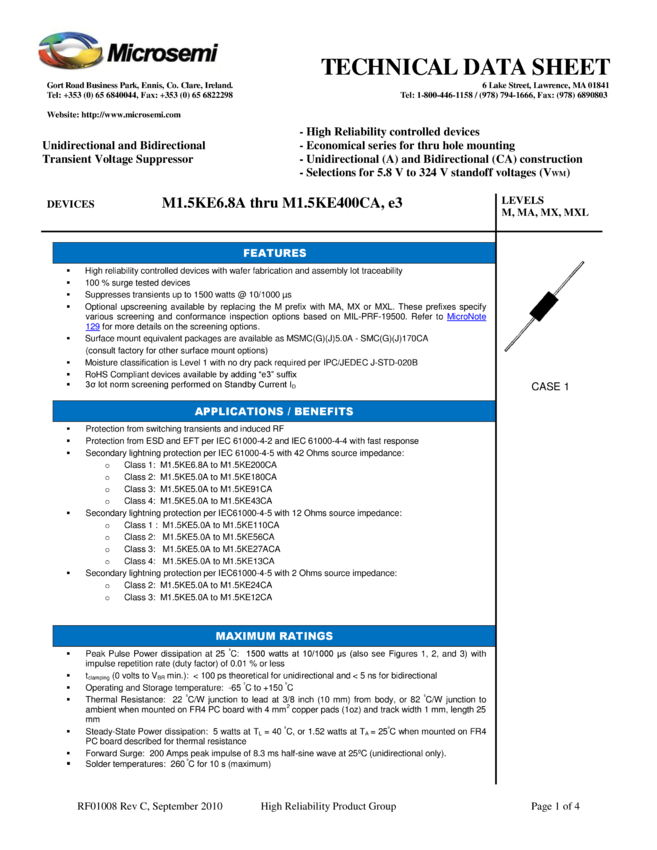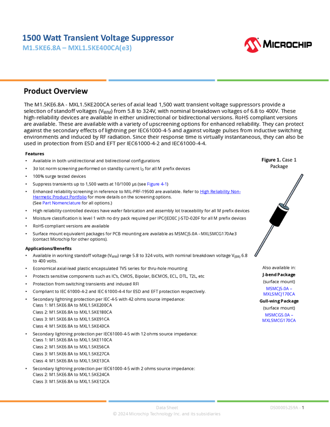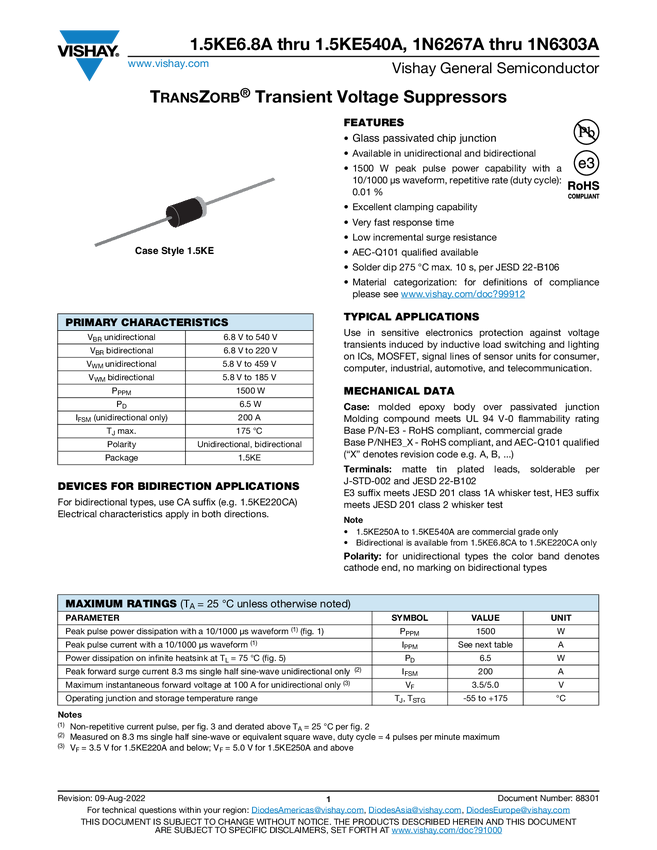 M1.5KE6.8A – MXL1.5KE400CA(e3)