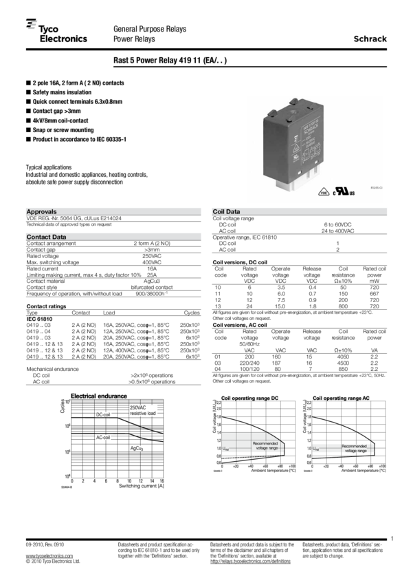 Electromechanical Relay DPST-NO 16A 200/240VAC 4.5KOhm Screw Mount