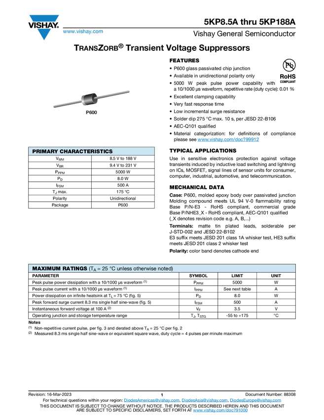 RF01010 5,000 Watt Transient Voltage Suppressor (TVS) Protection Device Data Sheet