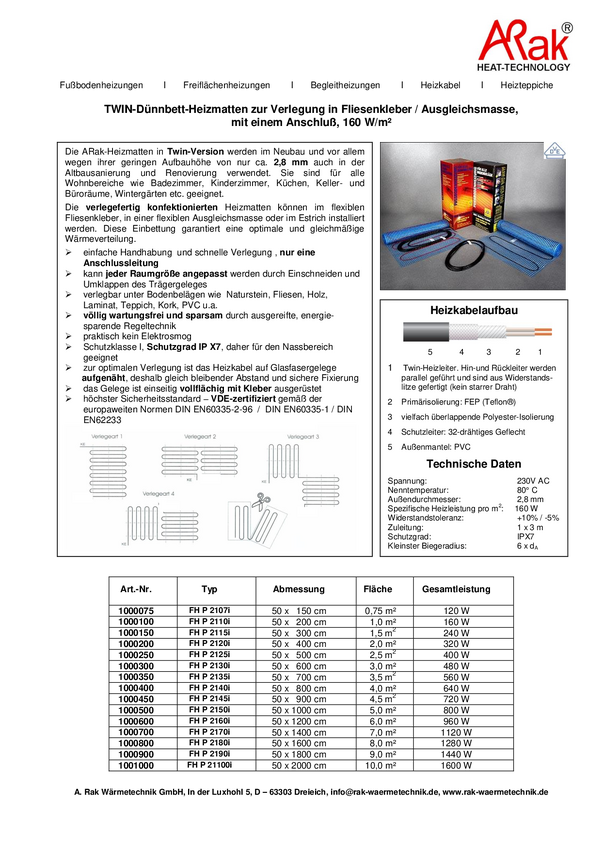 Elektryczny system podgrzewania podłogowego Arnold Rak FHP2145I, 4,5m2, mat. pomocniczy
