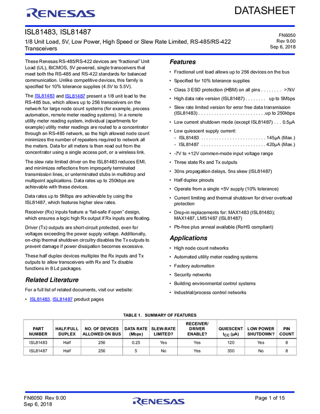 5V, Half Duplex, 5Mbps, ±15kV ESD Protected, RS-485/RS-422 Transceiver