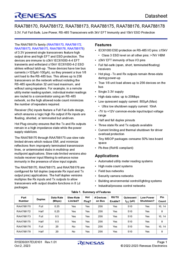 3V Full-Duplex, 0.5Mbps RS-485/422 Differential Transceiver with ±3kV EFT Immunity and ±10kV ESD Protection